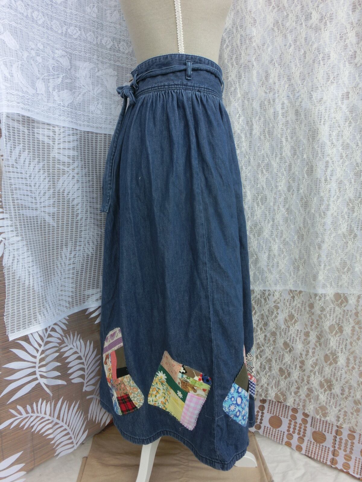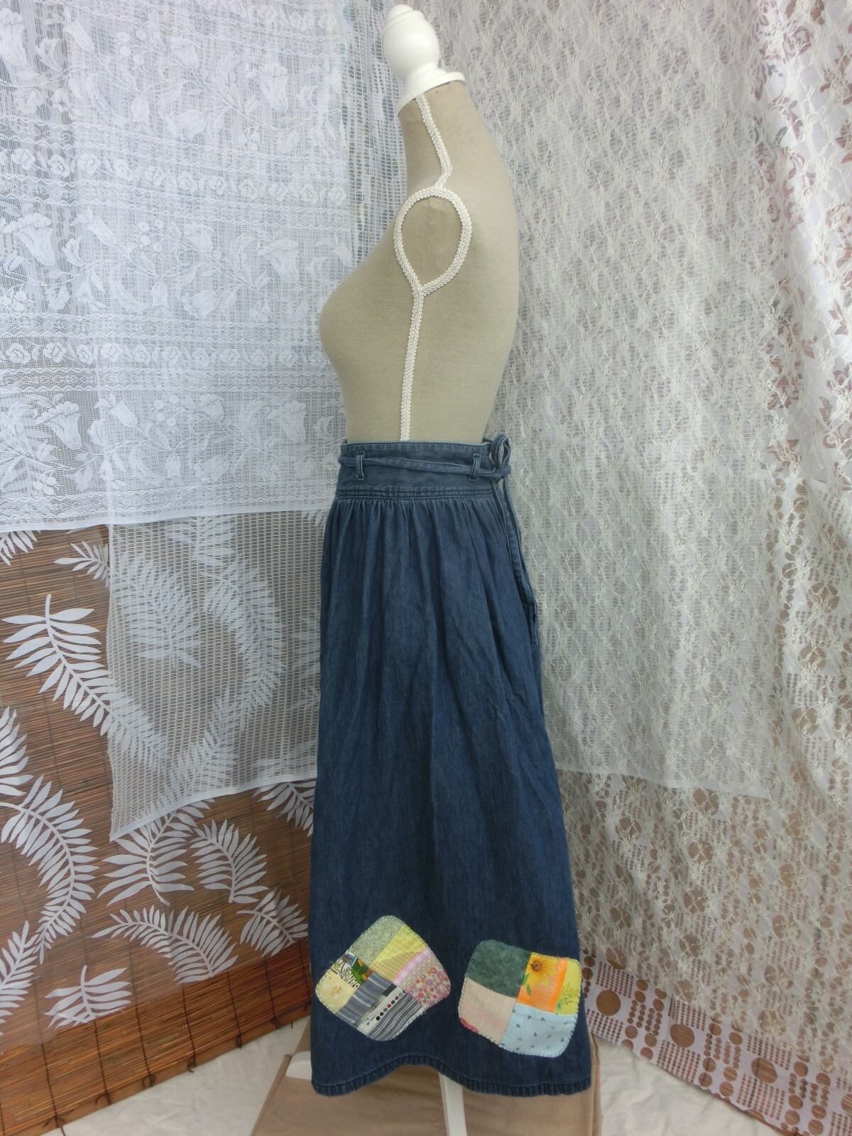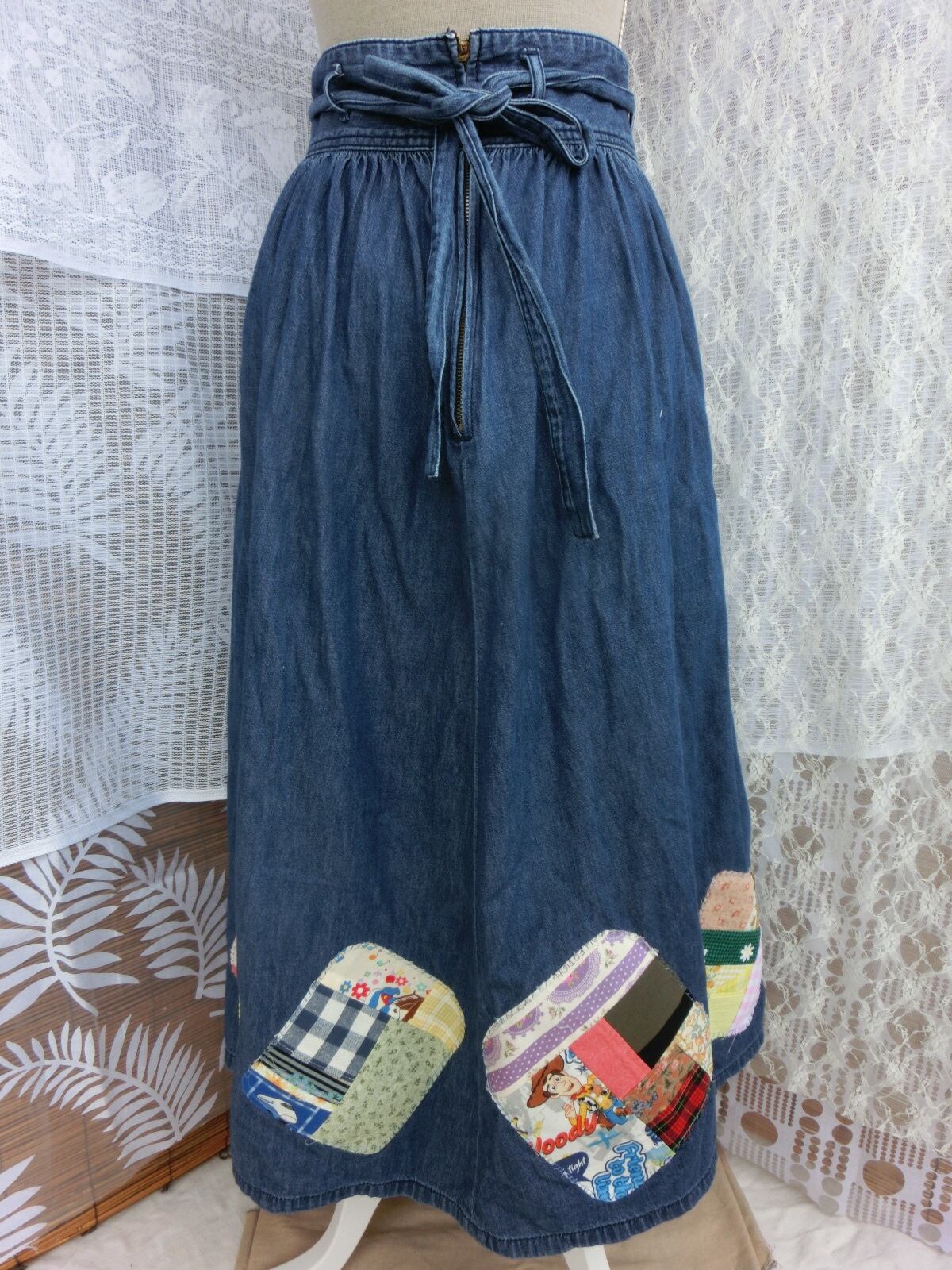 古着のデニムのギャザースカートをパッチワーク風にリメイクしました。