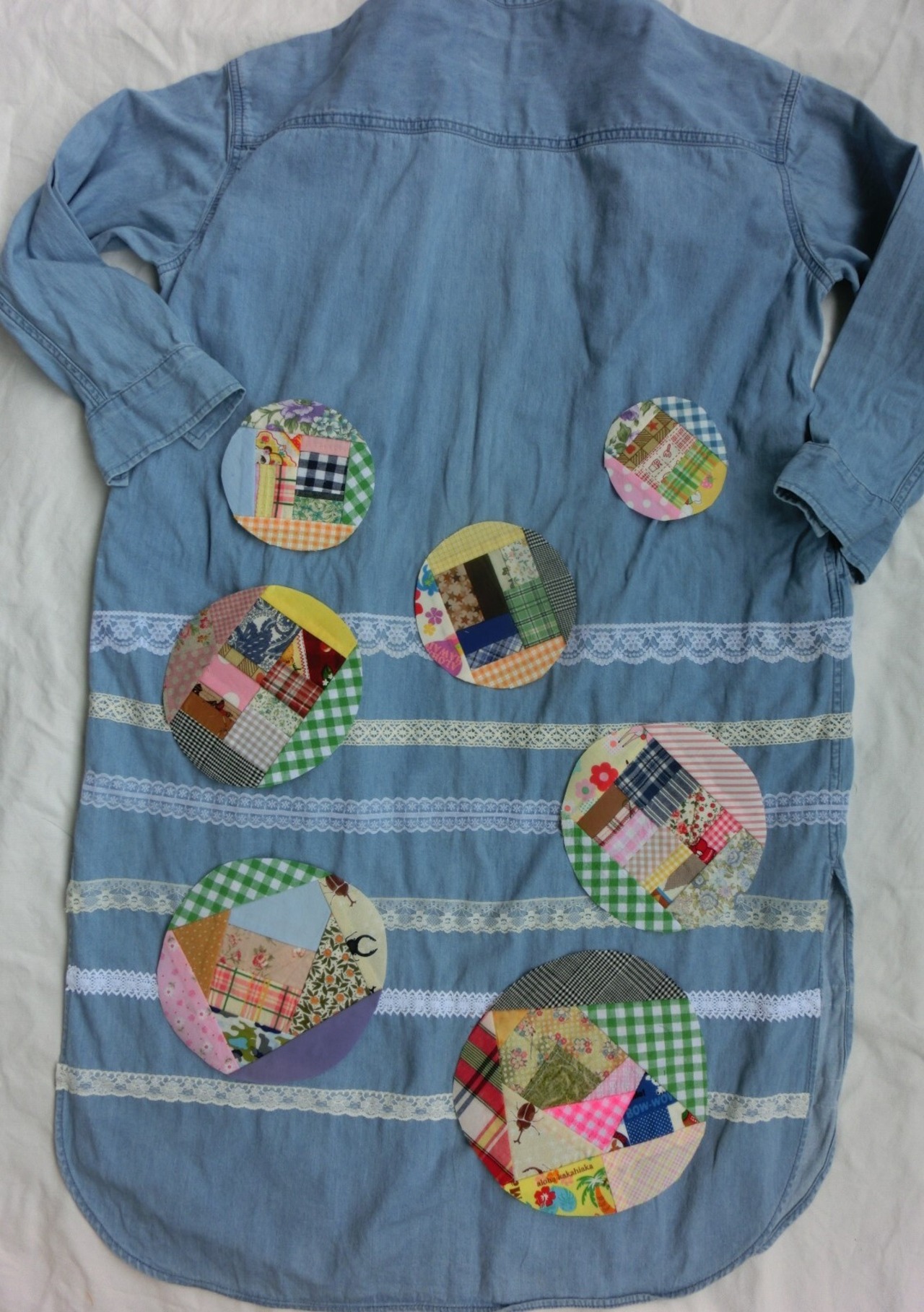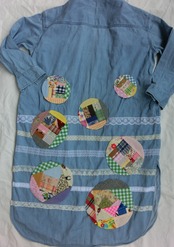 ハギレをパッチワークしたサークル型のアップリケの3枚セットです。