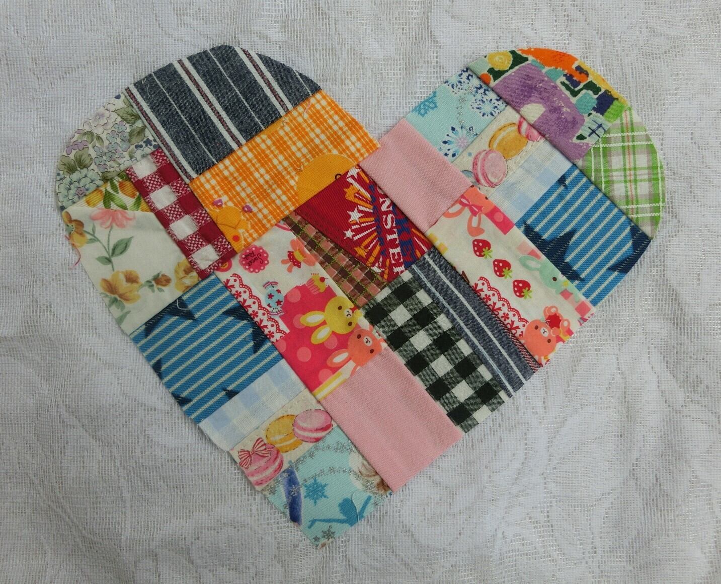 ハート型のアップリケです。ハギレをパッチワークしました。
